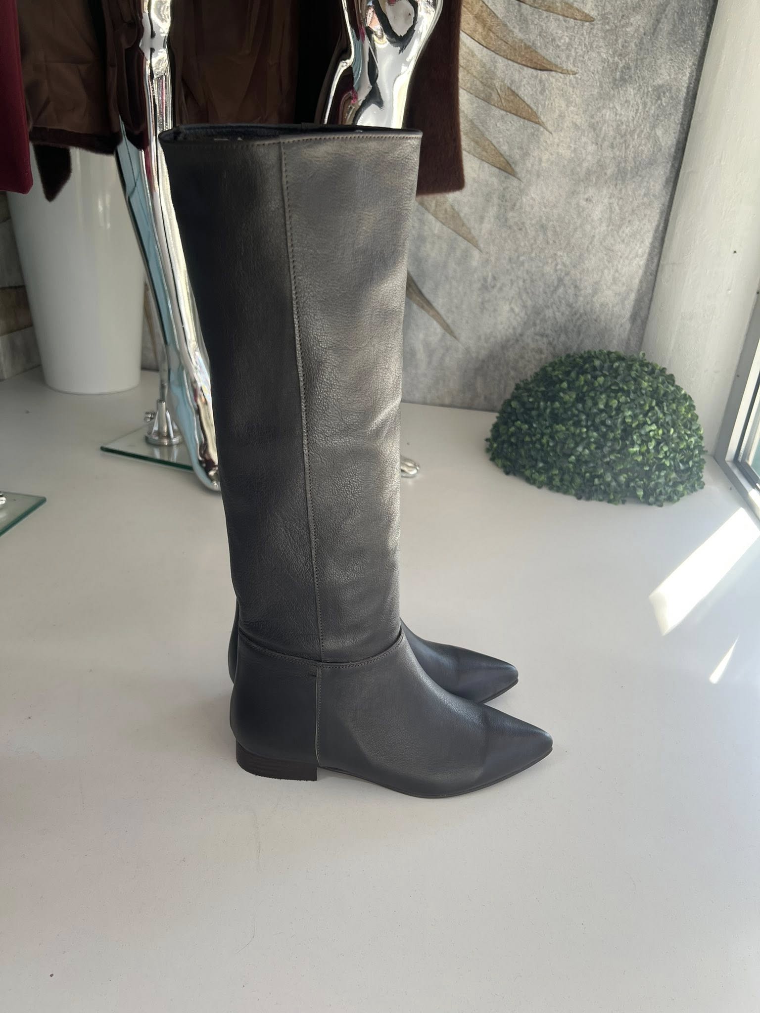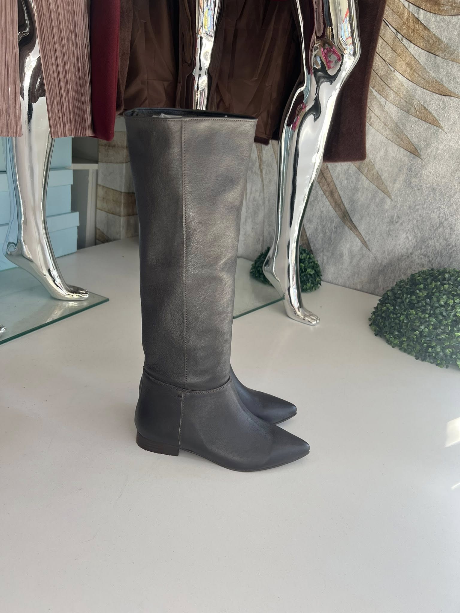 Čizme duge ravne 02 – Prirodna koža – Braon (model 02)