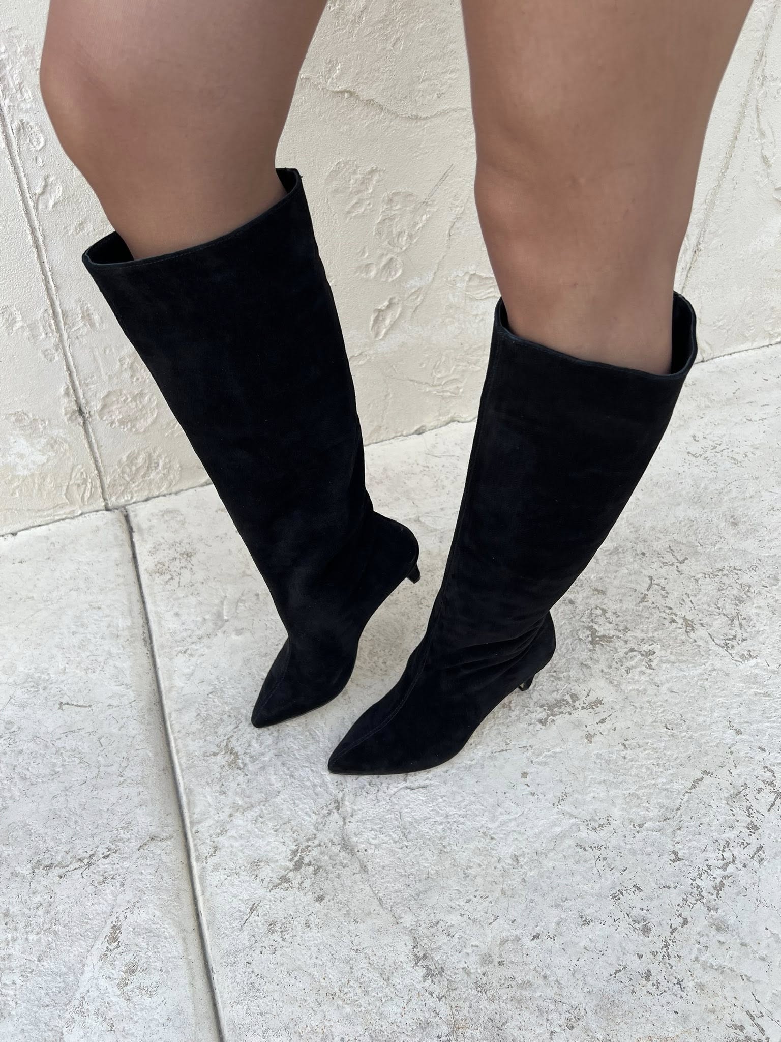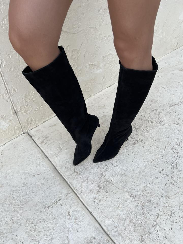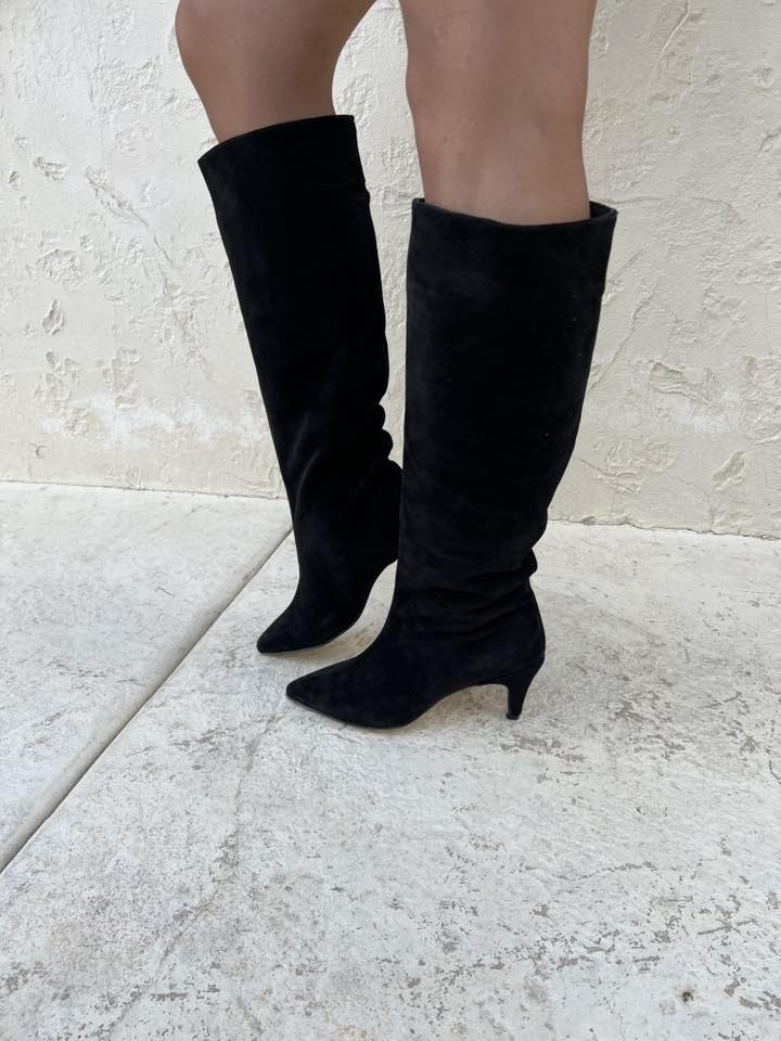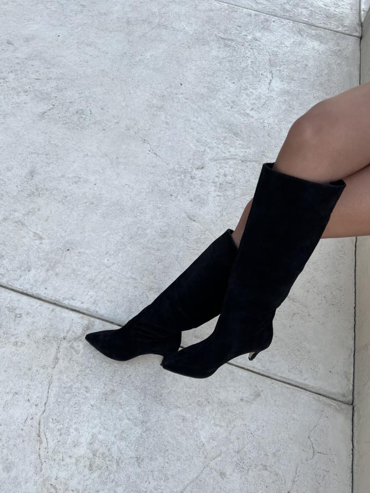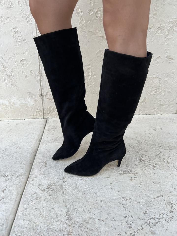 Čizme duge štikla 109 – Prirodna koža antilop na malu štiklu – Crne (model 109)