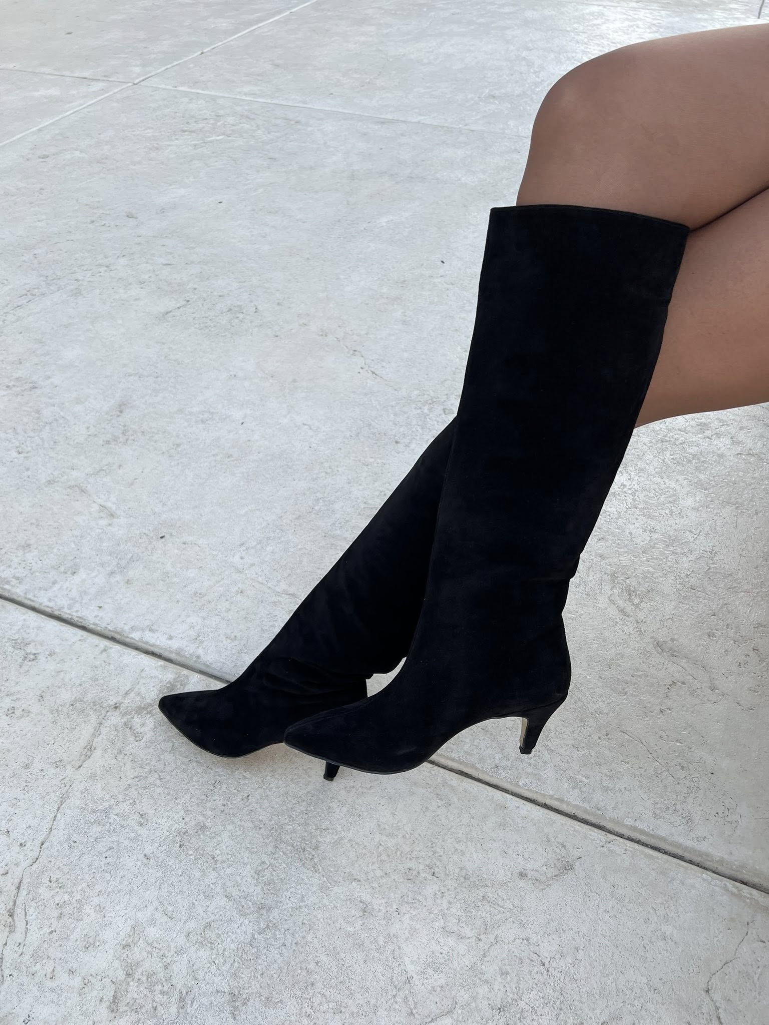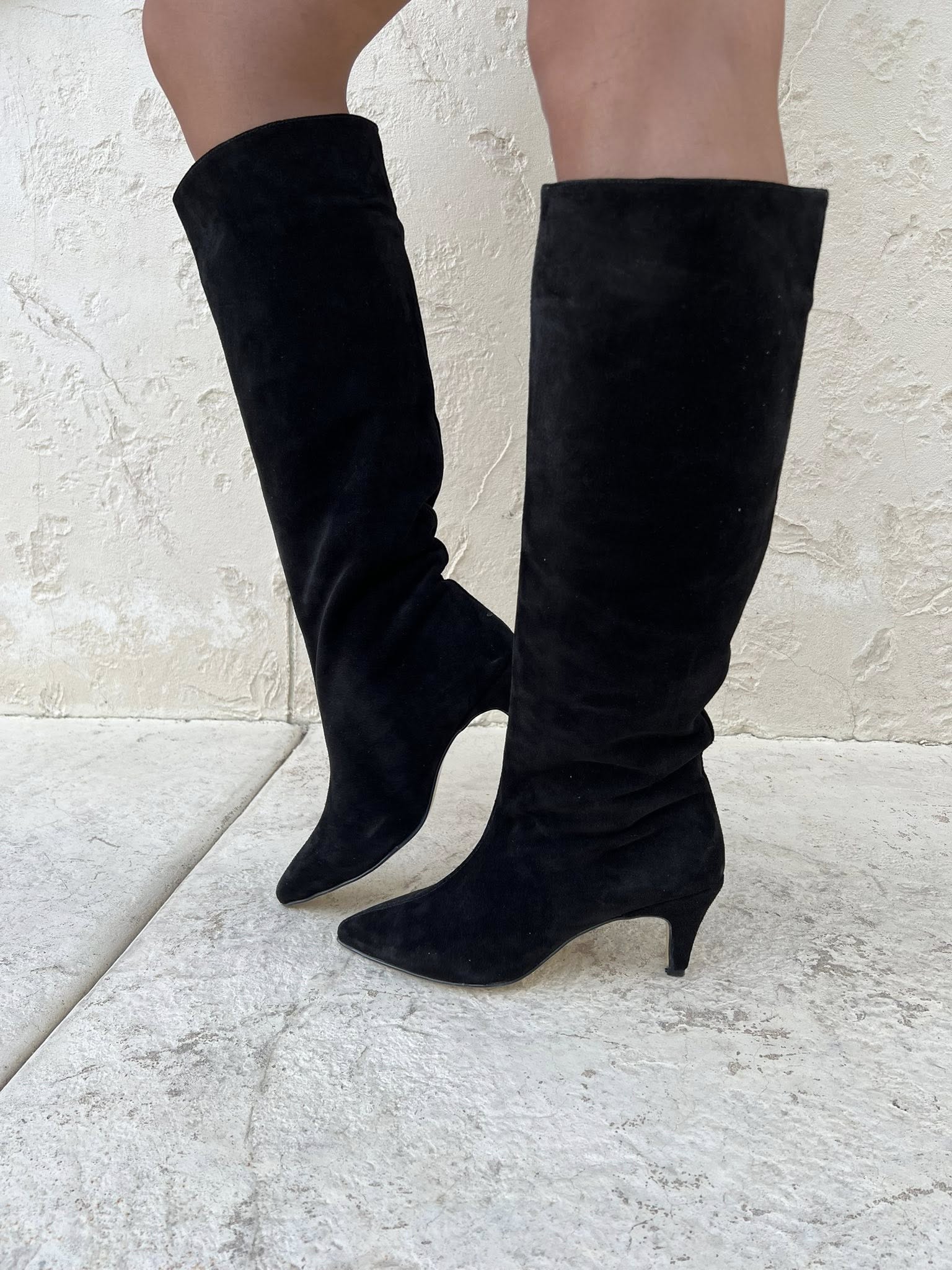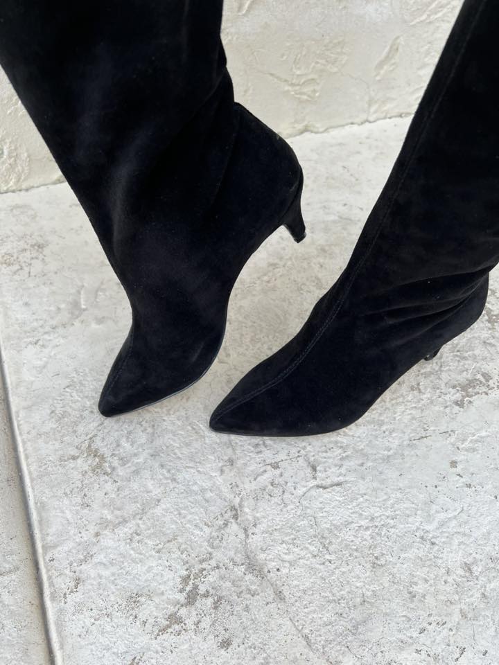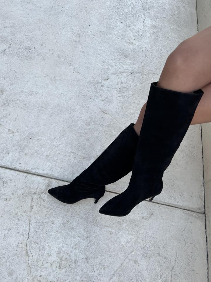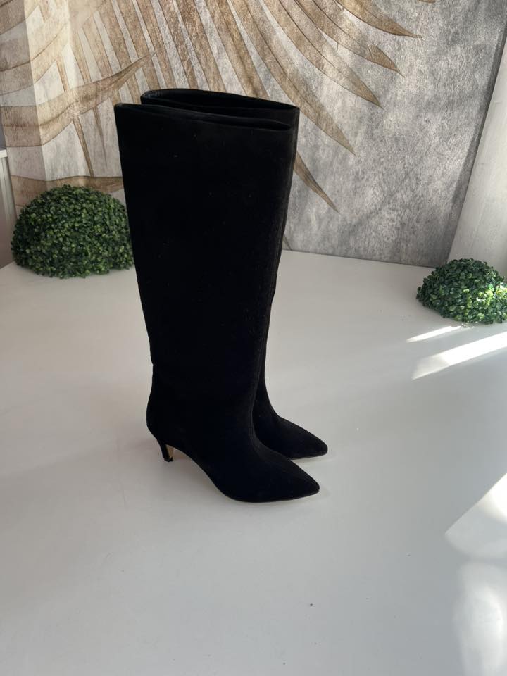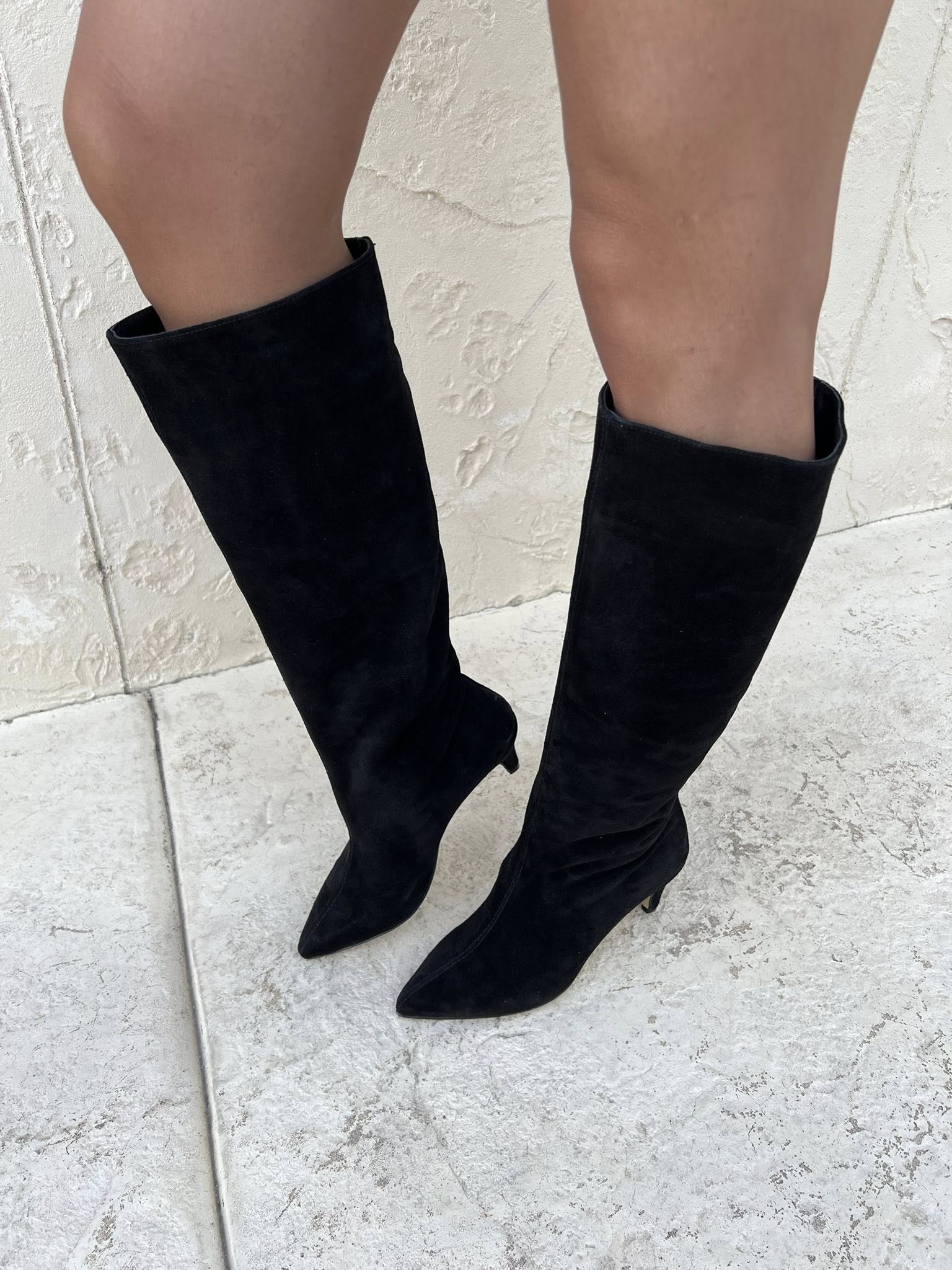 Čizme duge štikla 109 – Prirodna koža antilop na malu štiklu – Crne (model 109)