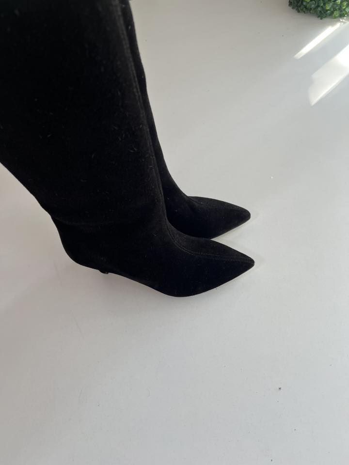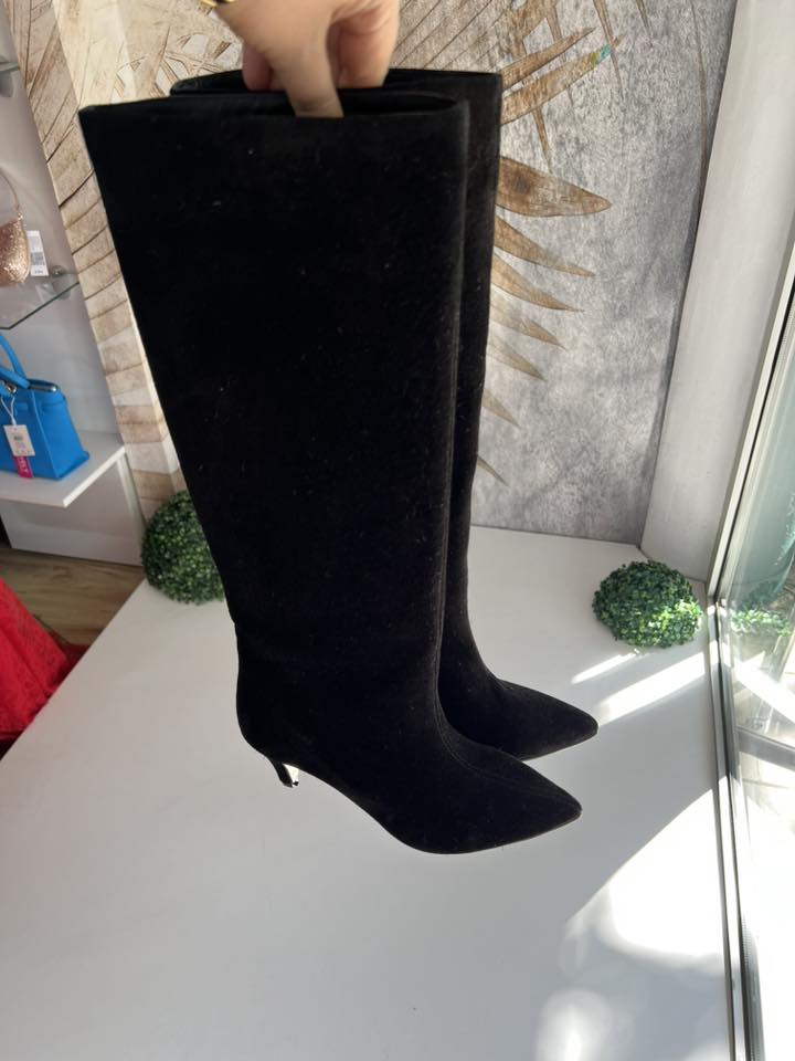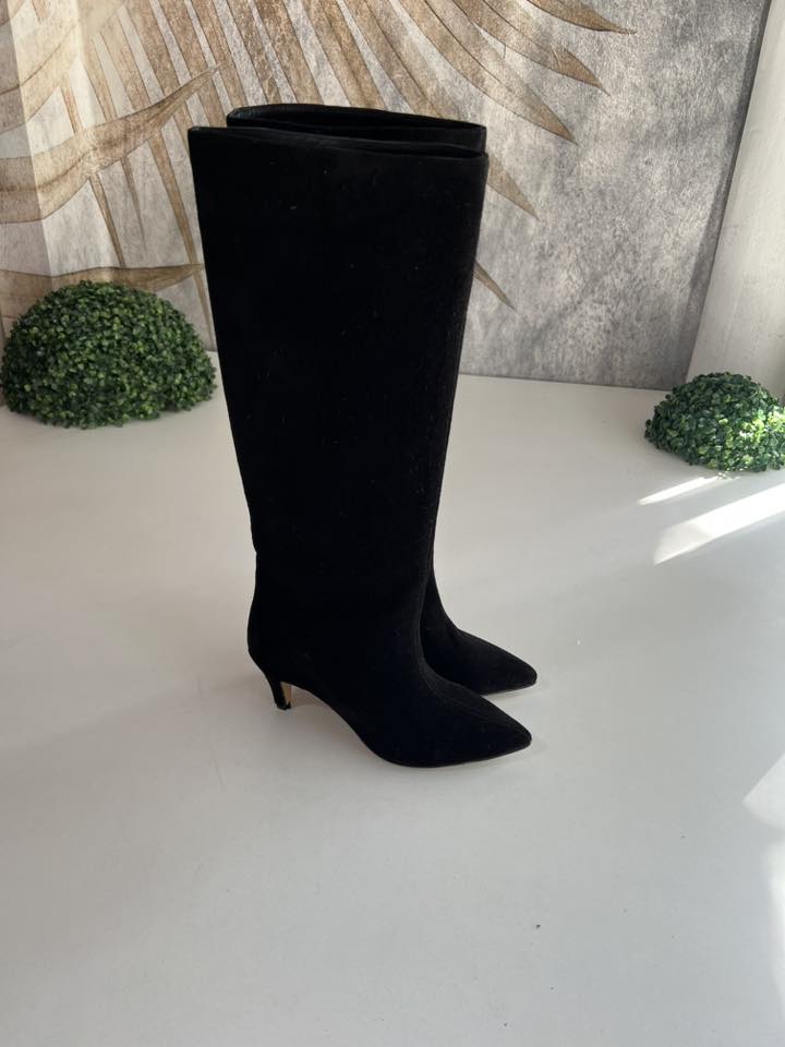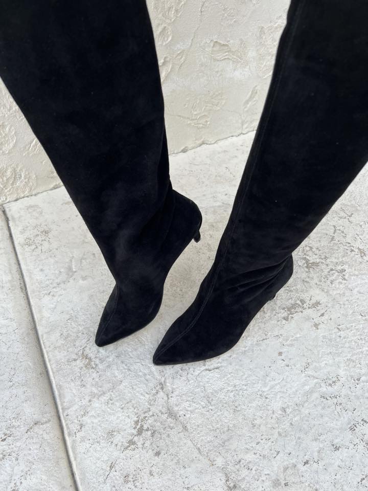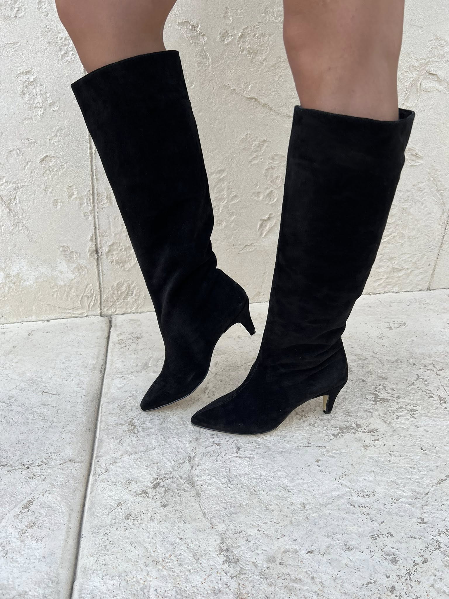Čizme duge štikla 109 – Prirodna koža antilop na malu štiklu – Crne (model 109)