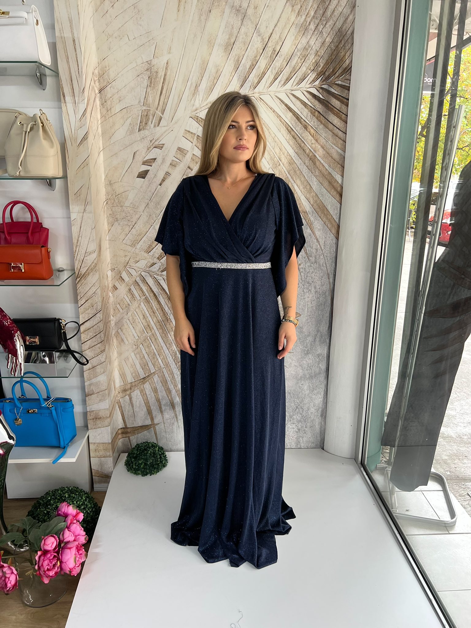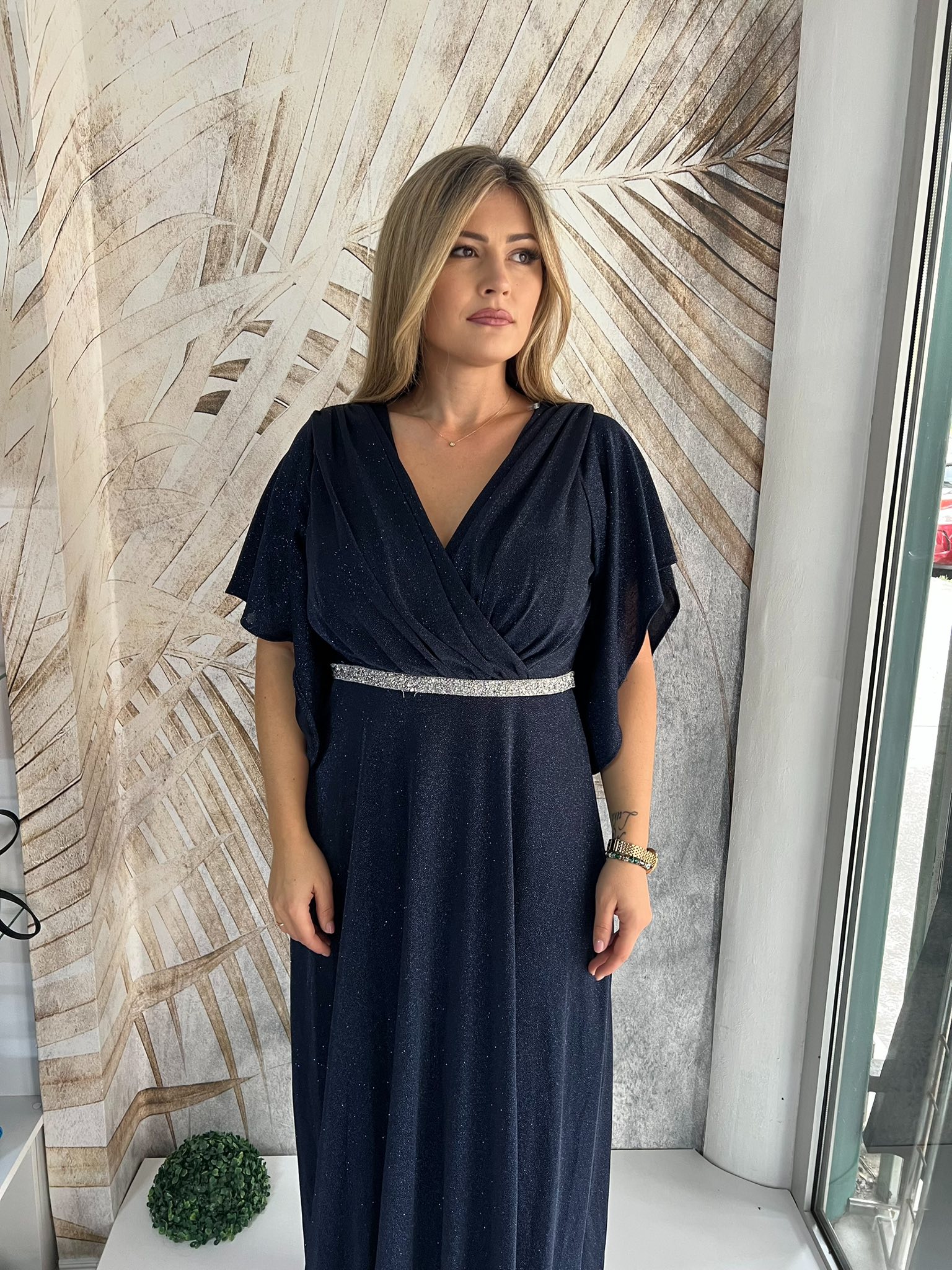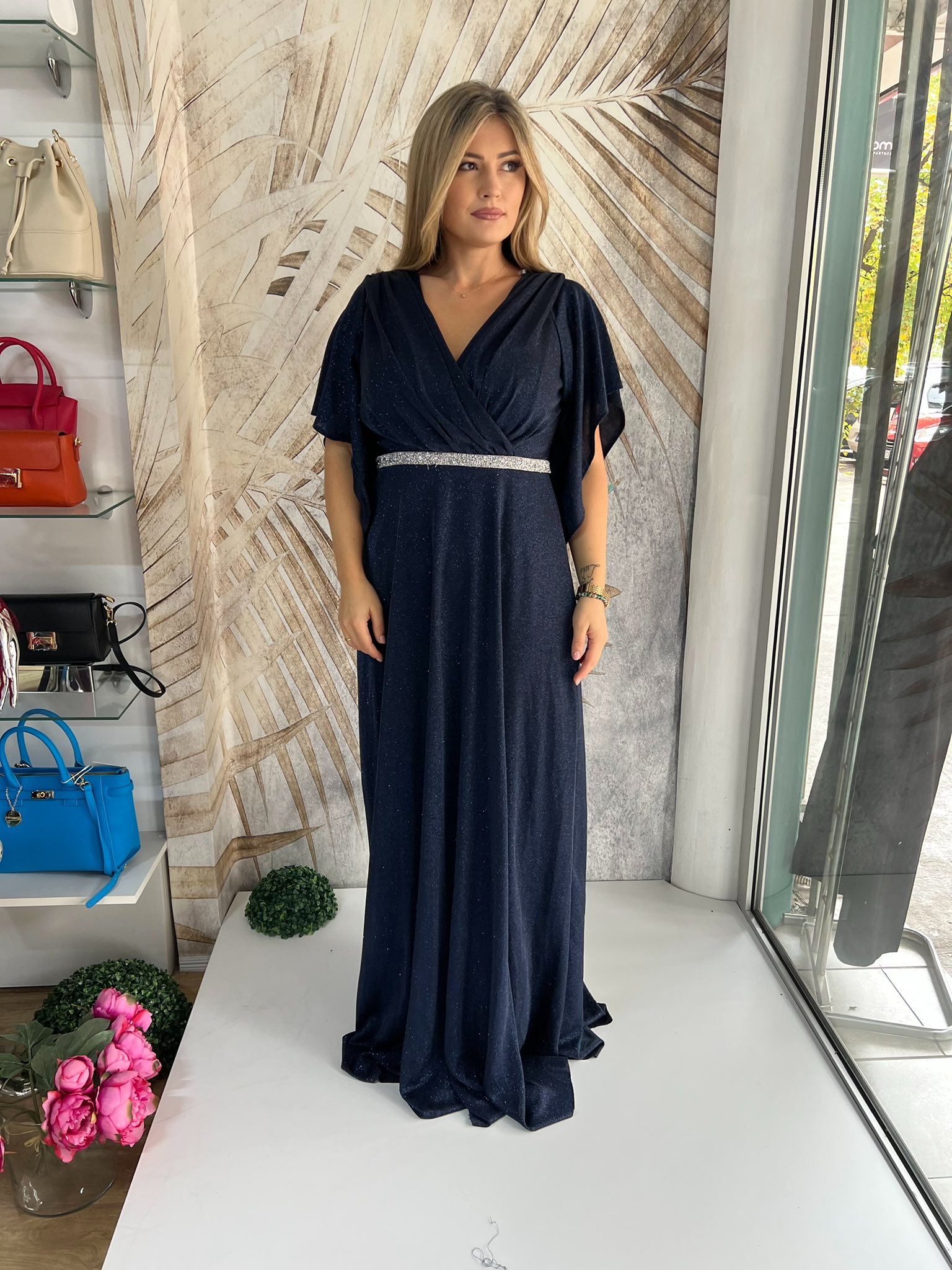 Duga haljina PLUS SIZE sa kratkim rukavima, teget (model 19)