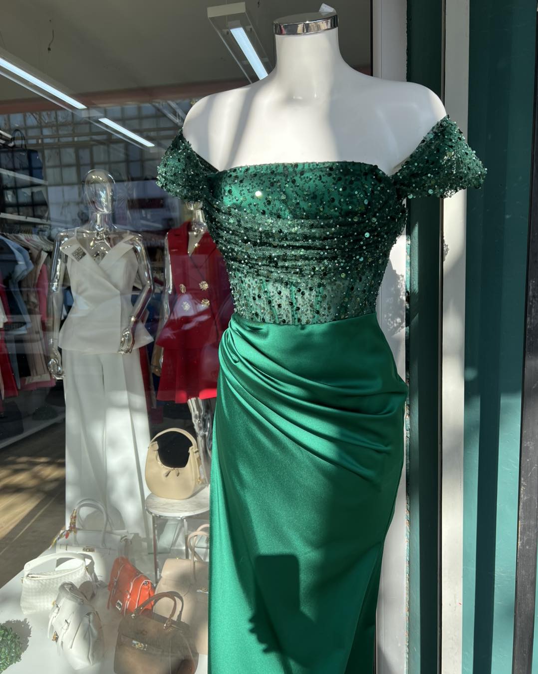 Duga zelena haljina sa pertlama na leđima (model 26)