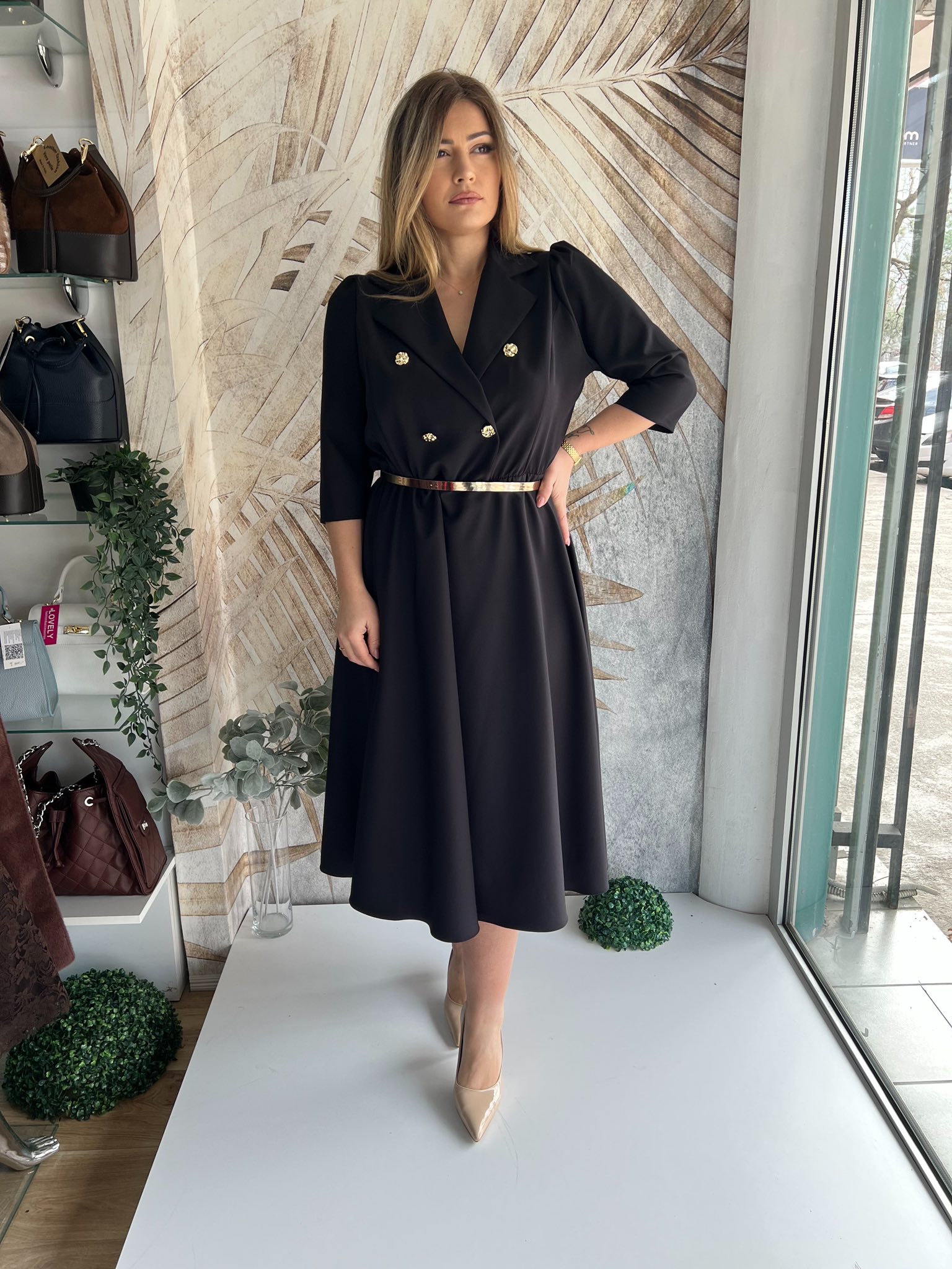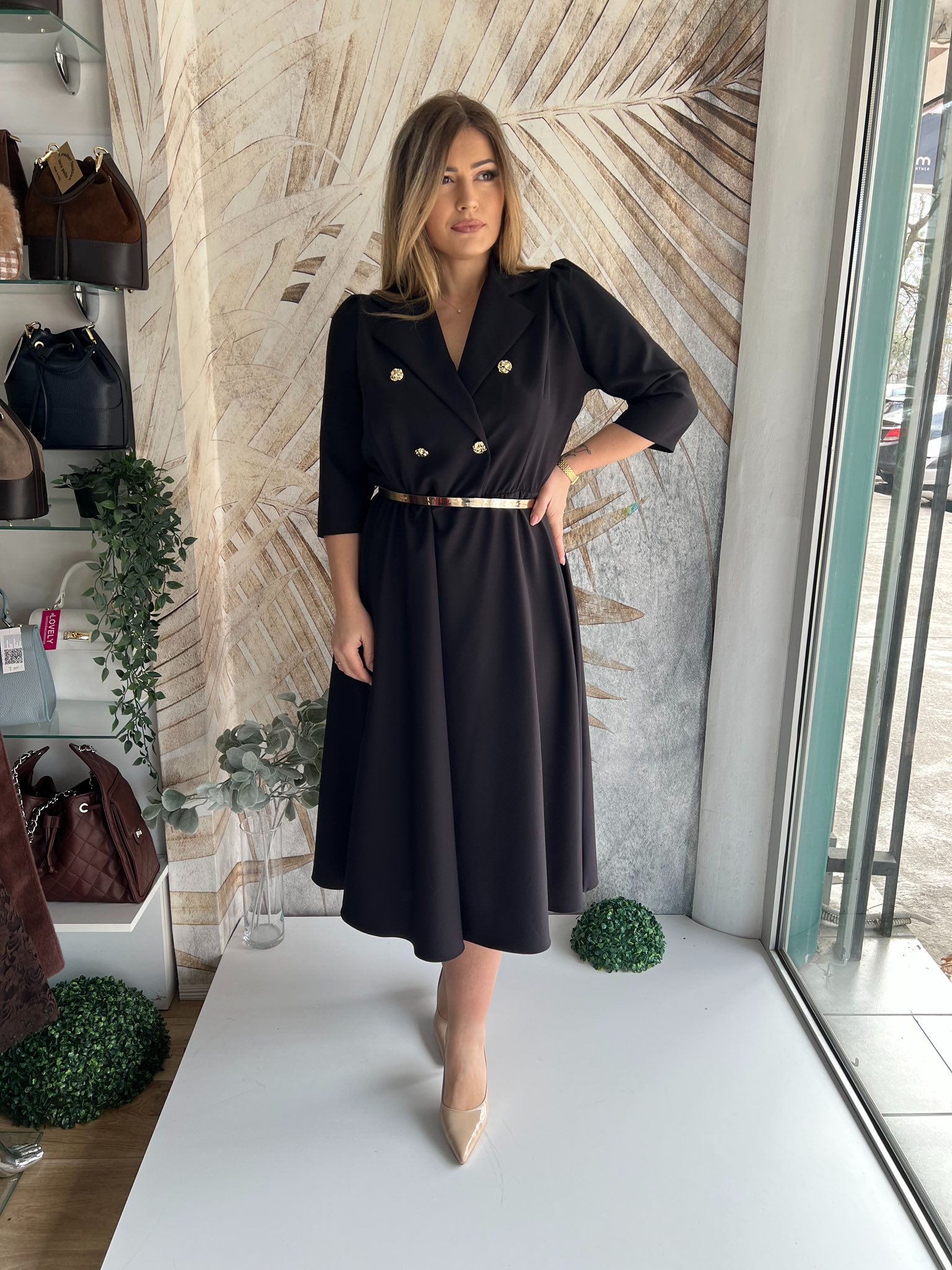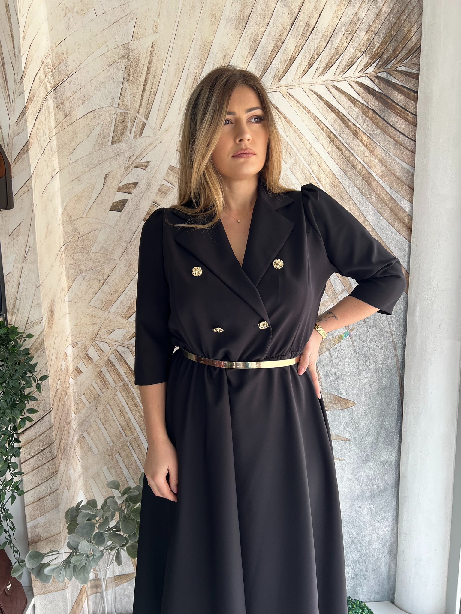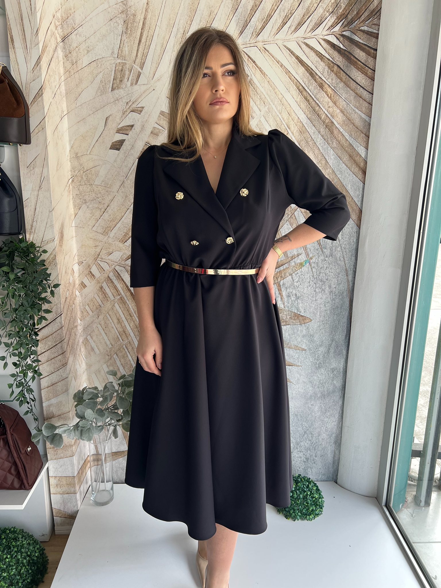 Haljina PLUS SIZE midi, crna sa zlatnim dugmićima