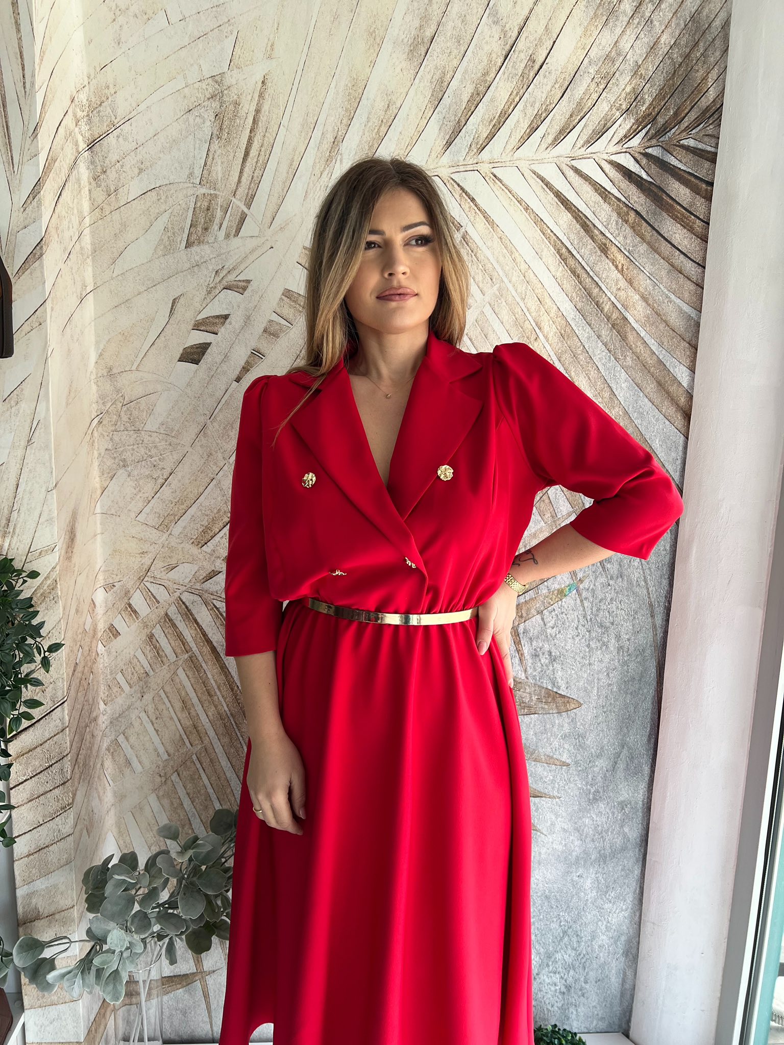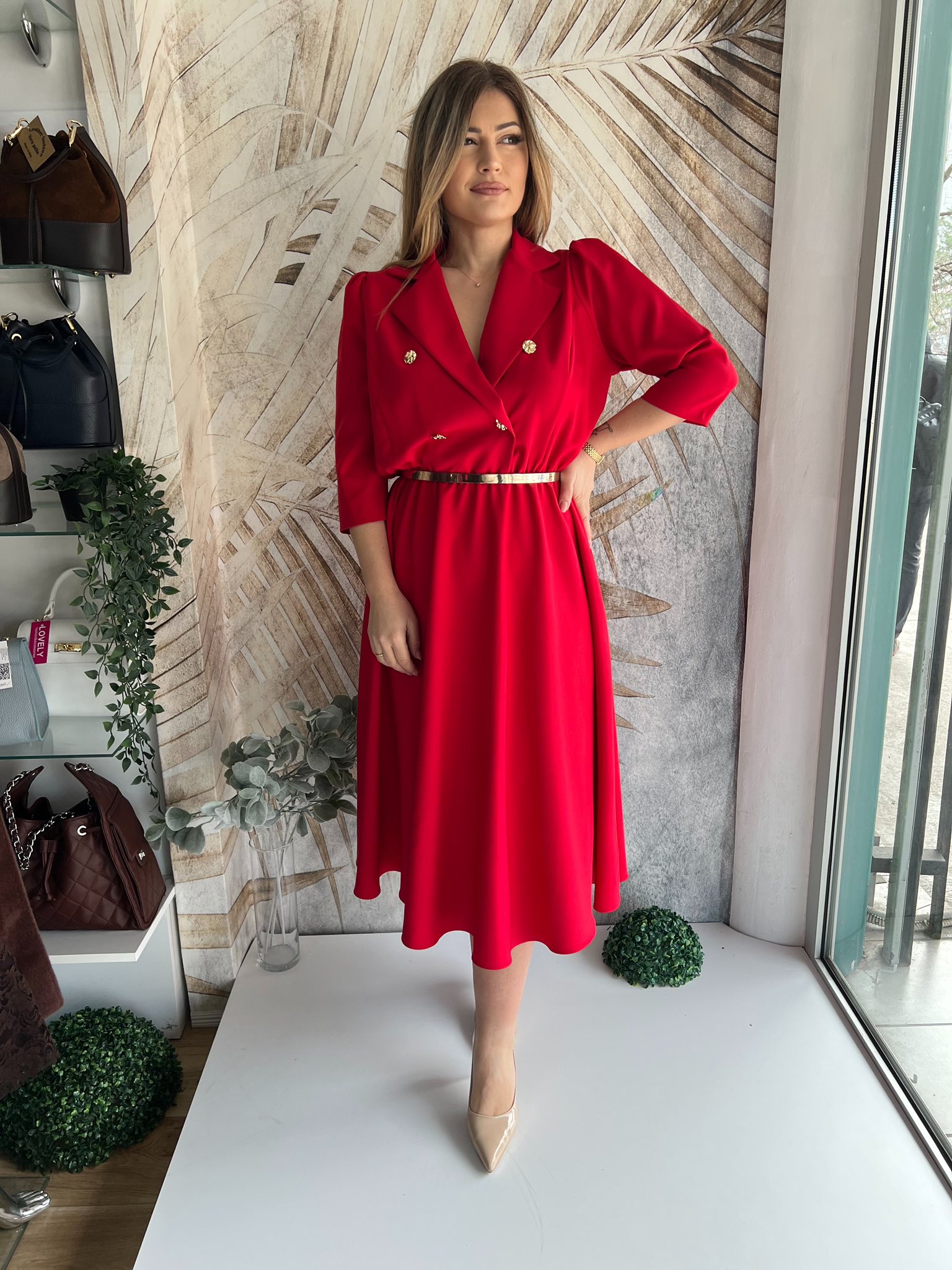 Haljina PLUS SIZE midi, crvena sa zlatnim dugmićima