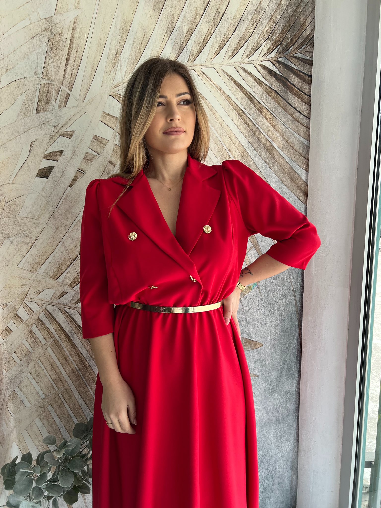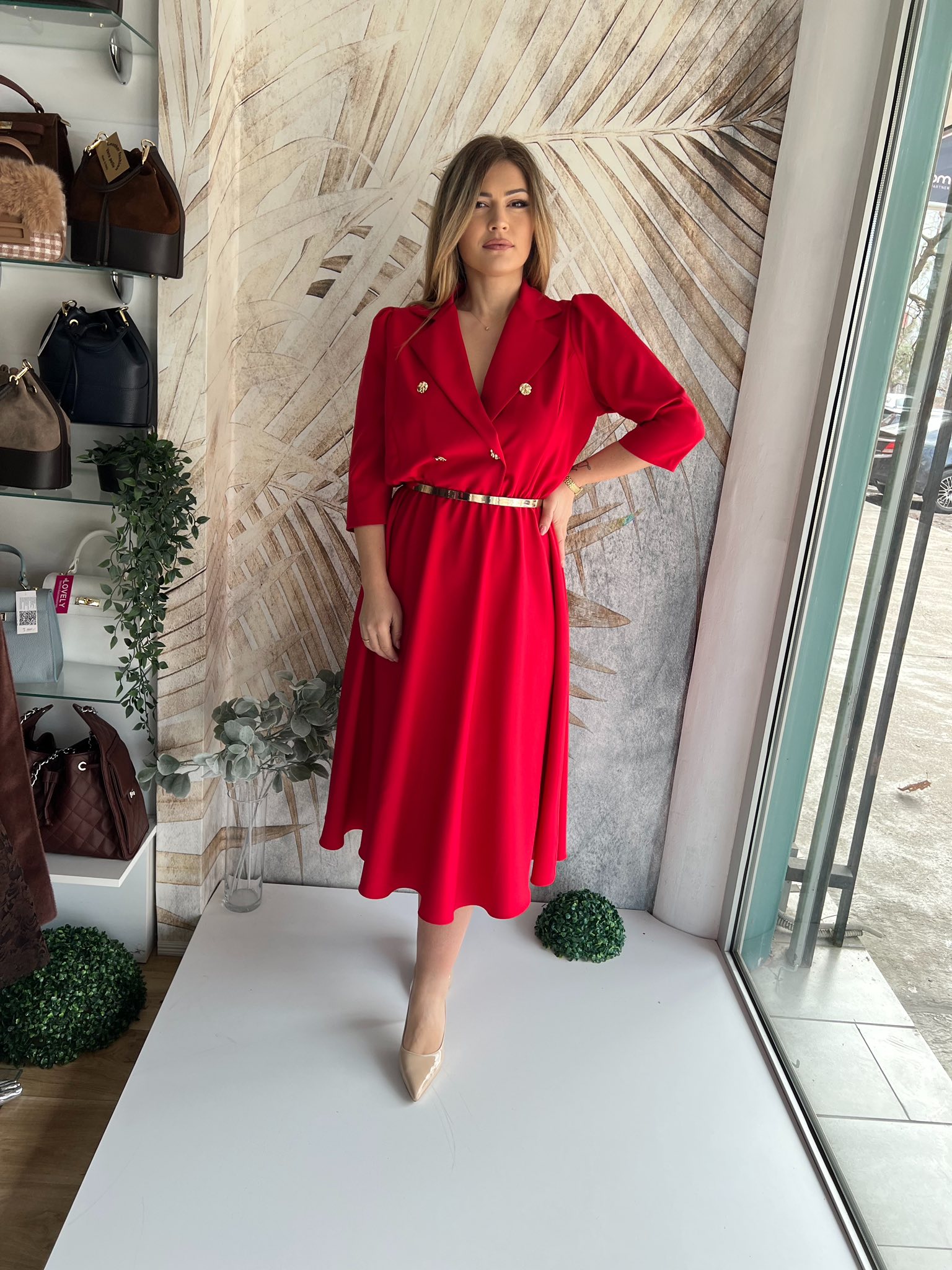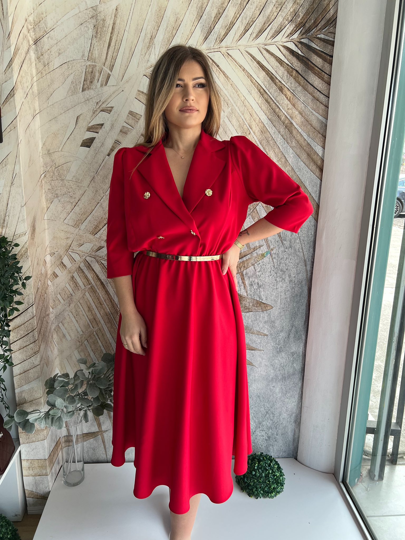 / Haljina PLUS SIZE midi, crvena sa zlatnim dugmićima