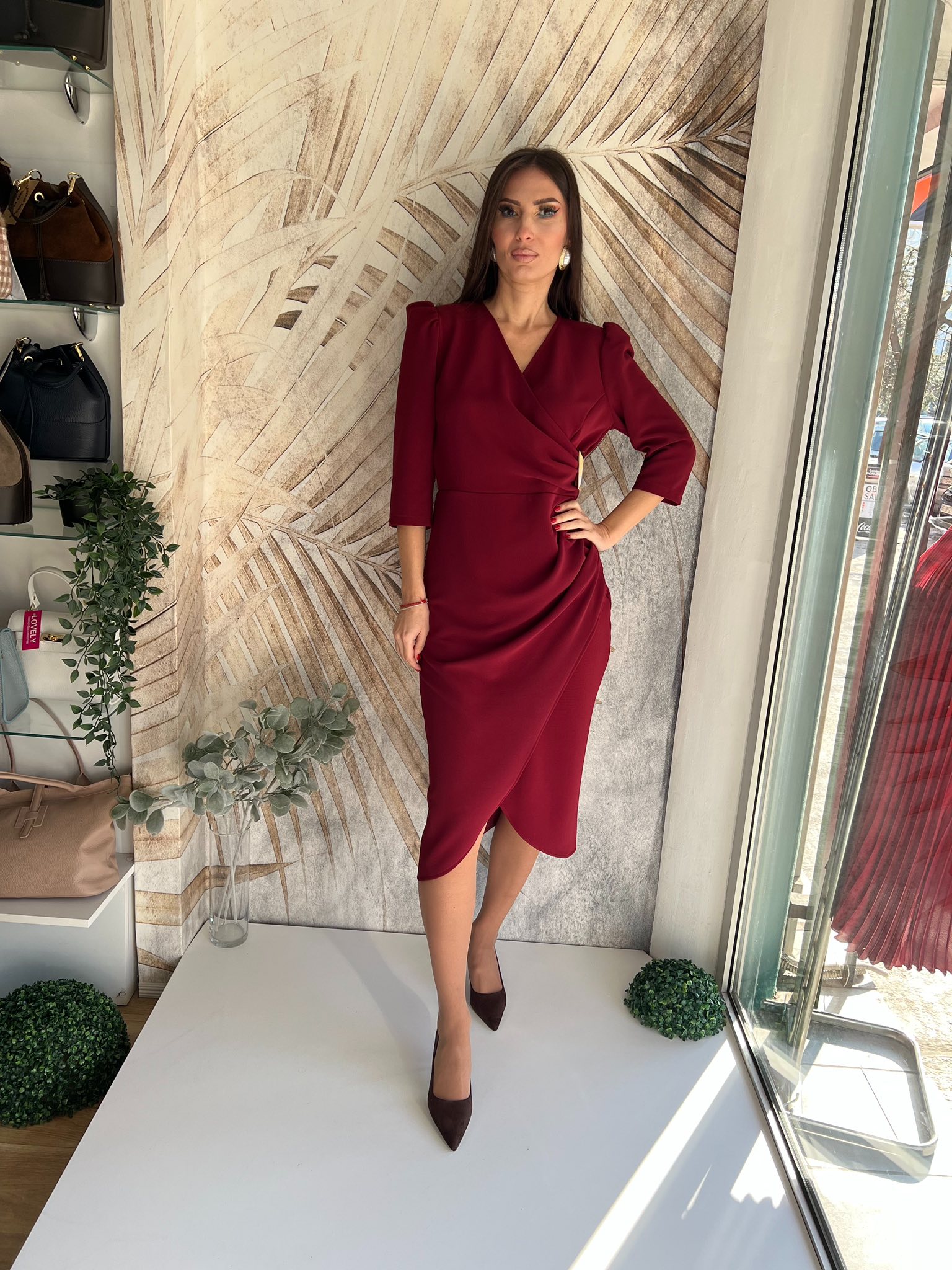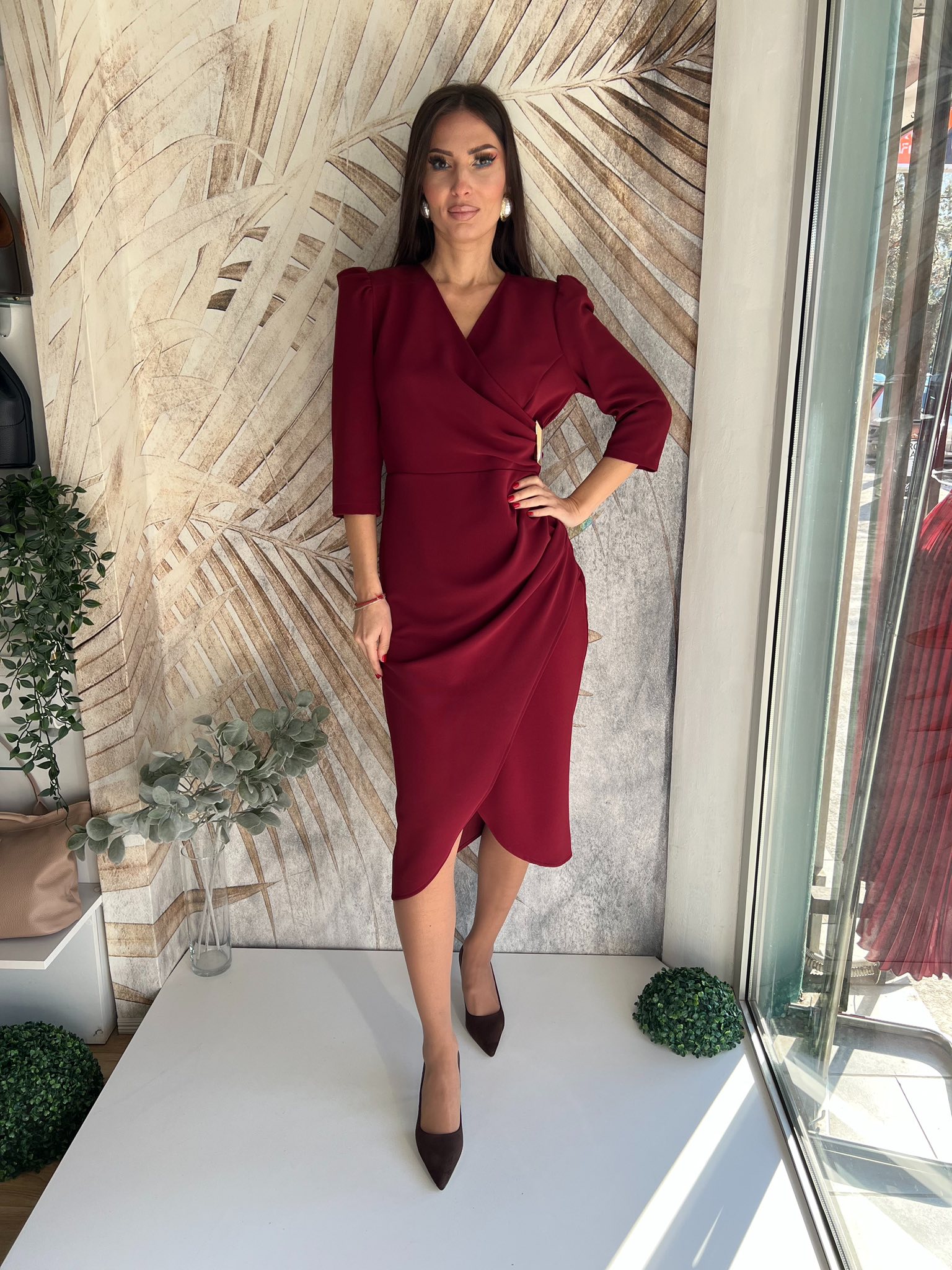 Haljina streč bordo na preklop sa zlatnom šnalom