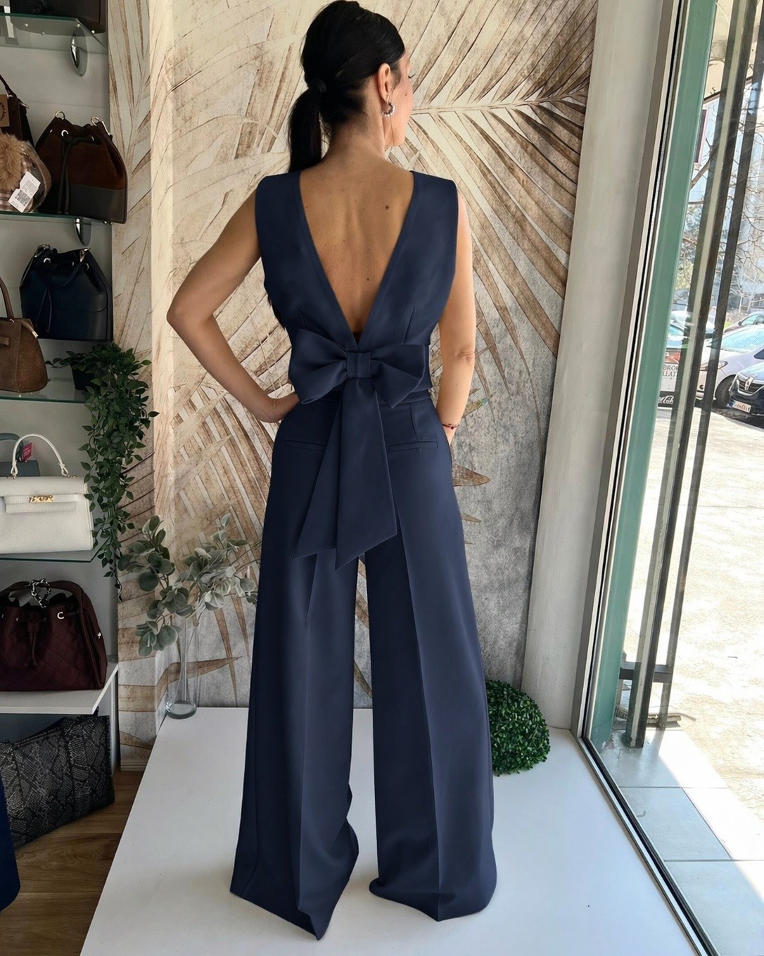 Komplet sa mašnom na leđima u teget boji
